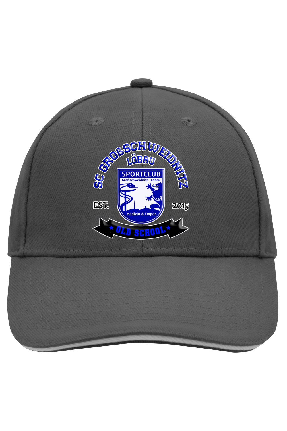 Dieses Cap ist aus strapazierfähigen Baumwollgewebe gefertigt, welches in Form der 6-Panel-Form geschnitten ist. Der Schirm ist mit einer kontrastfarbigen Biese ausgestattet. Verschlossen wird die Kappe über eine Textillasche mit Messing-Schließe, über welche die Kopfweite stufenlos eingestellt werden kann. Für erhöhten Tragekomfort sind die einzelnen Panele mit ventilierenden Öffnungen ausgestattet.